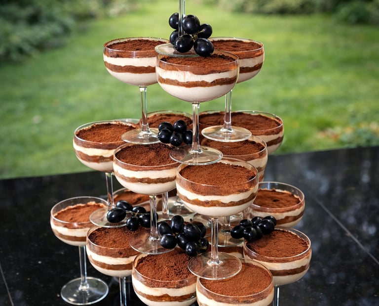 Saldūs tiramisu šampano taurėse – jūsų vestuvių prabanga!